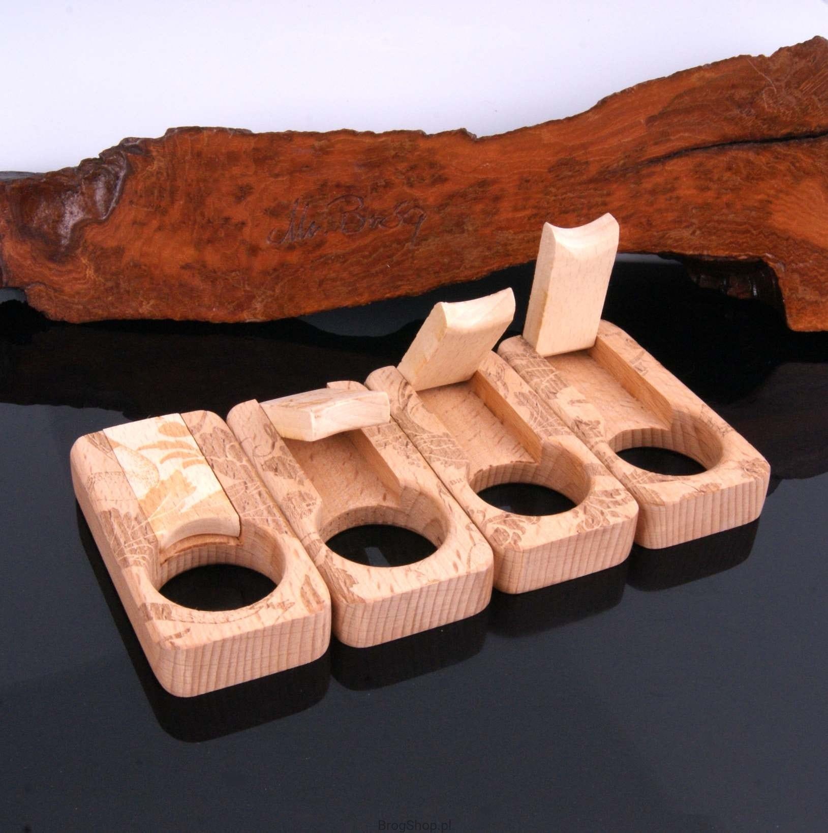Oryginalny, składany stojak wykonany z drewna bukowego. Odpowiedni do fajek o umiarkowanym rozmiarze oraz regularnym kształcie. Idealnie sprawdza się w czasie podróży. UWAGA - obecnie dostępne stojaki nie posiadają grawerowanego wzoru / mozaiki.